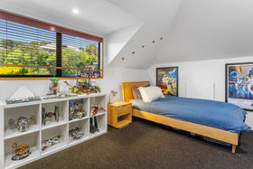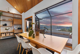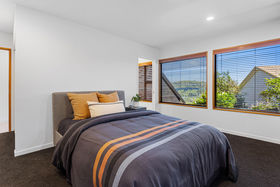 On the lower level, a trio of beautifully connected living zones enjoy fantastic sun, breathtaking views, and seamless flow to a large, Northwest facing entertaining deck. The sleek open-plan kitchen, dining, and family area is the social heart of the home, perfect for both family gatherings and relaxed evenings, while the adjoining formal lounge and versatile additional living space lend flexibility for a playroom, media retreat, or guest lounge.