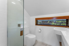 From the moment you step inside, the dramatic ceiling heights and striking black steel staircase set the tone, a stunning interplay of scale and sophistication. Feature light fittings, in-built joinery, warm timber detailing and T&G ceilings bring texture and mid-century style and flair, balancing the home's modern edge with a welcoming sense of character.