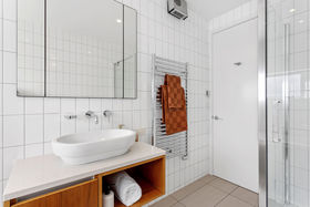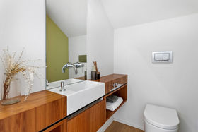 Upstairs, you'll find three beautifully proportioned bedrooms and two bathrooms. The master suite features a soaring pitched plywood ceiling, separate balcony, custom walk-in wardrobe, and a spacious ensuite.