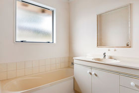 - Functional bathroom designed for everyday family use with separate toilet