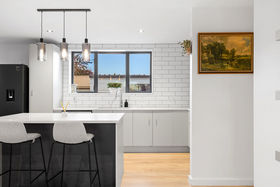 The kitchen connects easily with the main living areas, creating a relaxed hub where everyday life unfolds. Large windows allow natural light to pour in, while great indoor-outdoor flow makes entertaining easy and enjoyable.